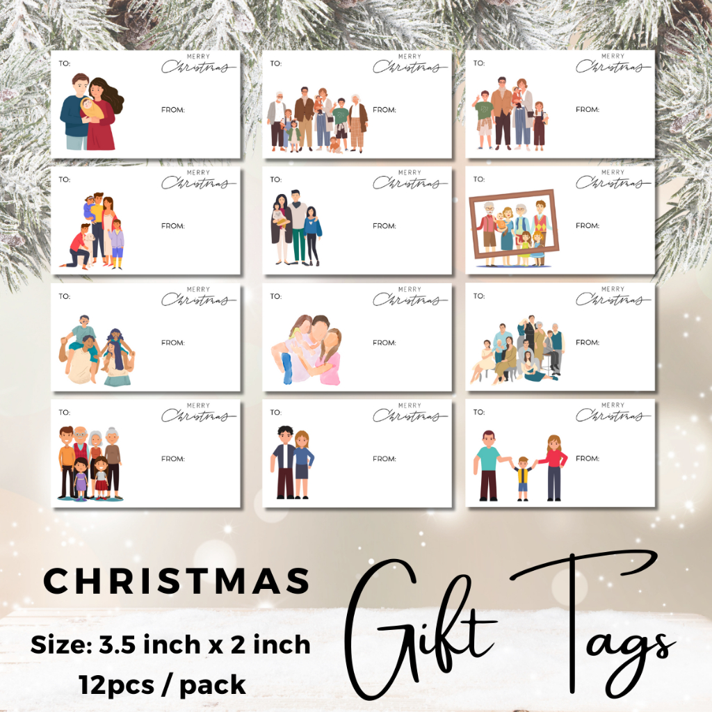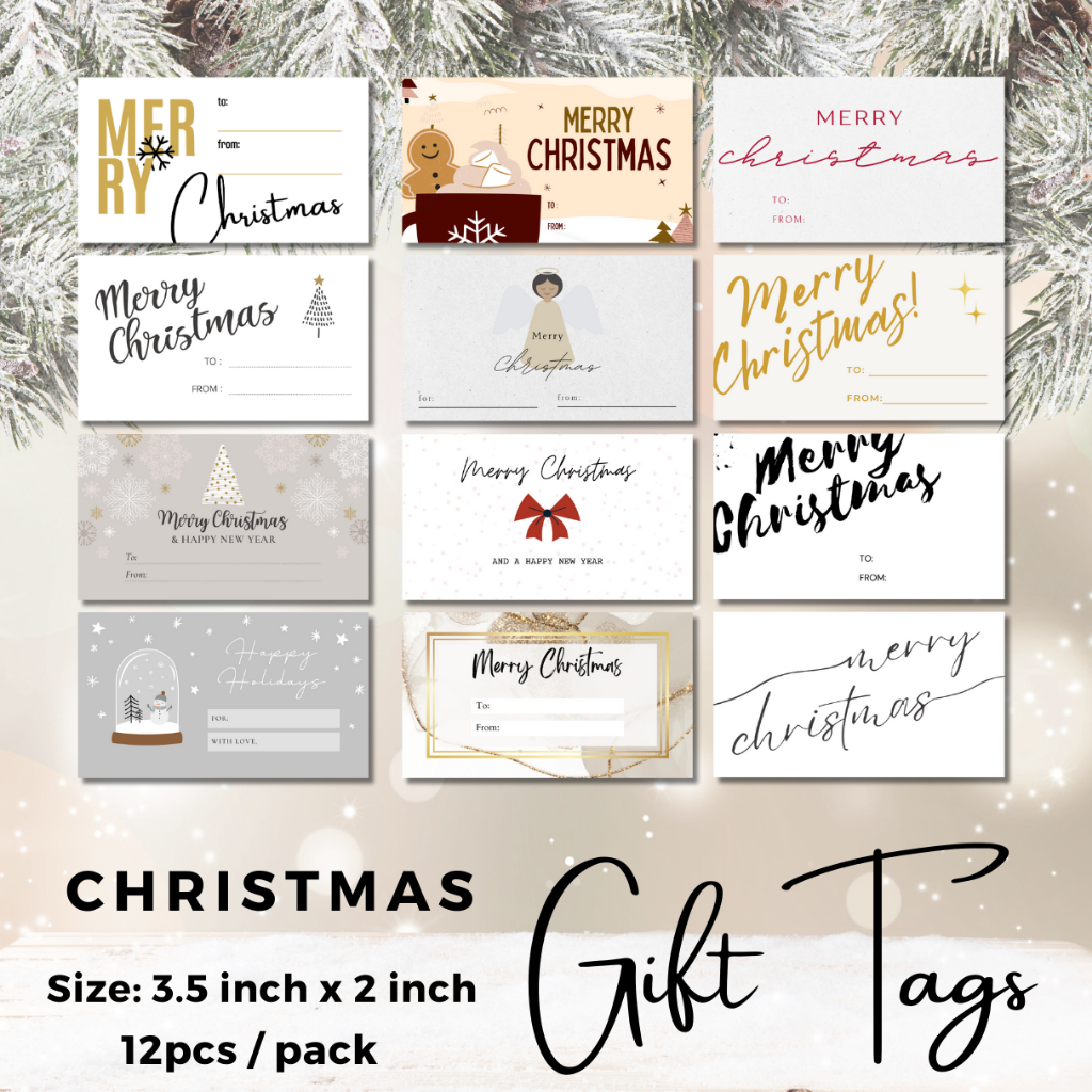 12 Pcs Christmas Tag | Gift Tags | 3.5 x 2 inches White Lovely Gift Tags [SET C]
