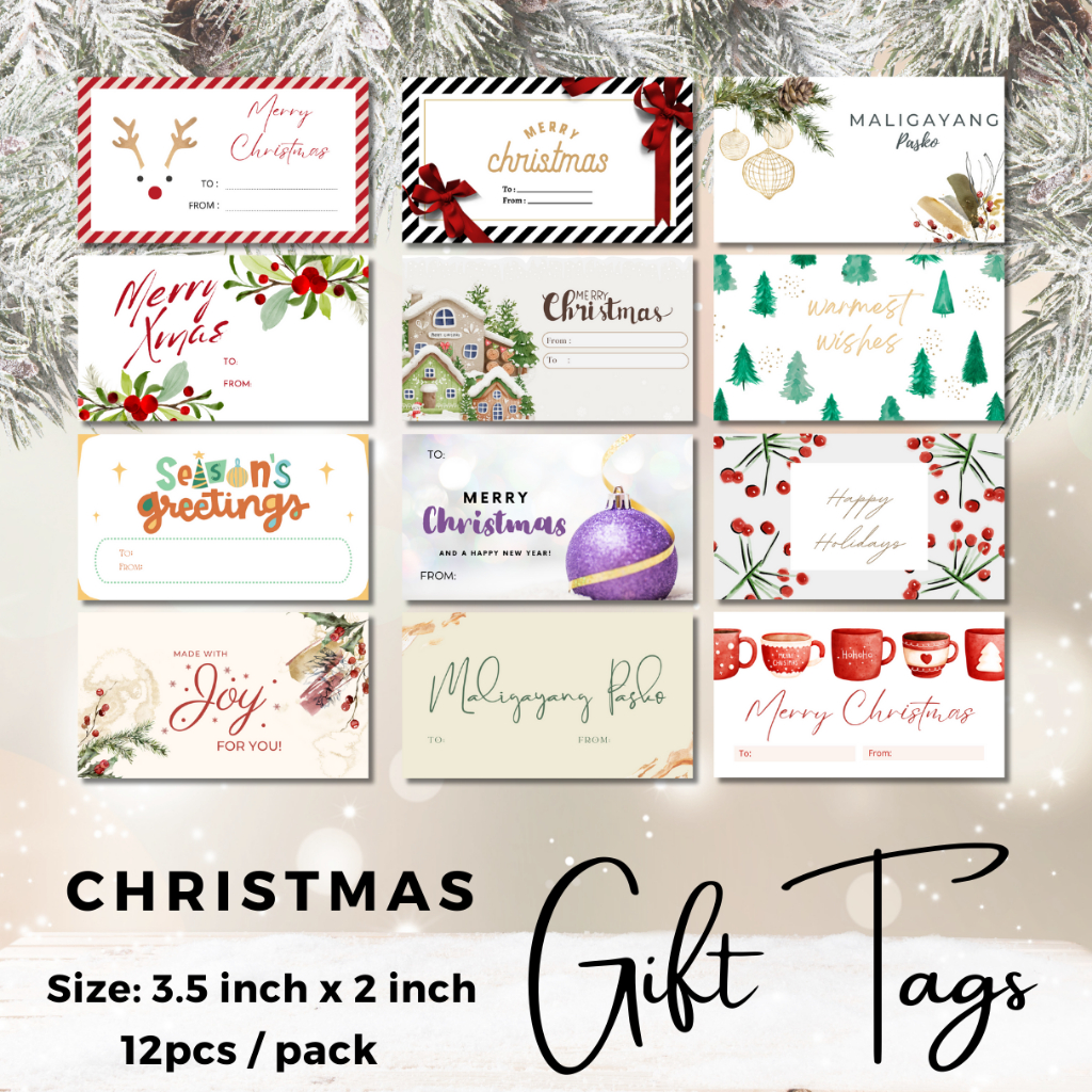 12 Pcs Christmas Tag | Gift Tags | 3.5 x 2 inches White Lovely Gift Tags [SET E]