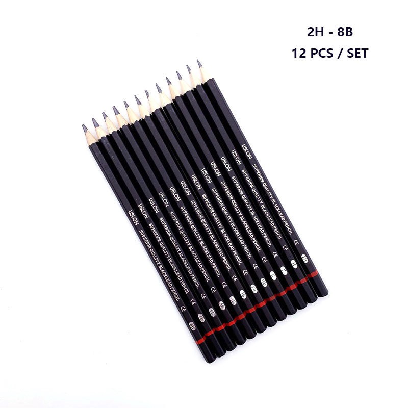 12 Pcs Sketching Pencil Set 2H-8B Set Iron Box Painting Drawing