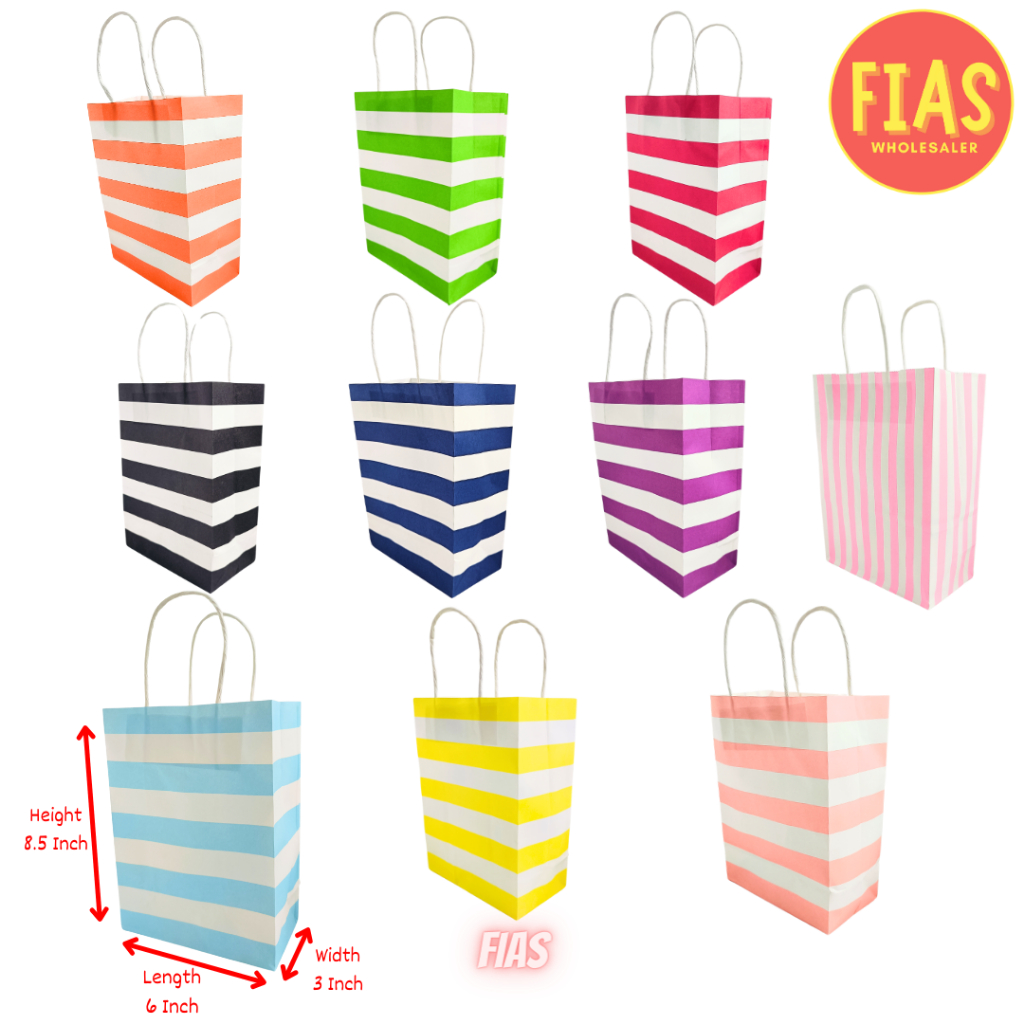 12 Pieces Stripes Paper Bag / 8.5" Size / Paper Loot bags P432