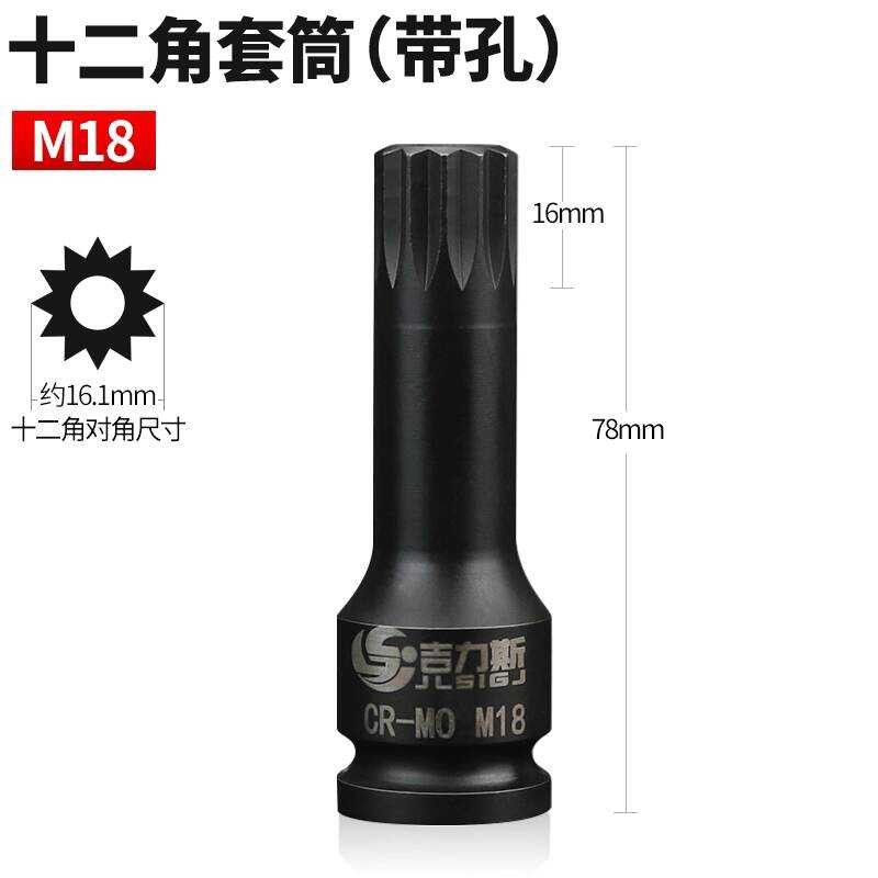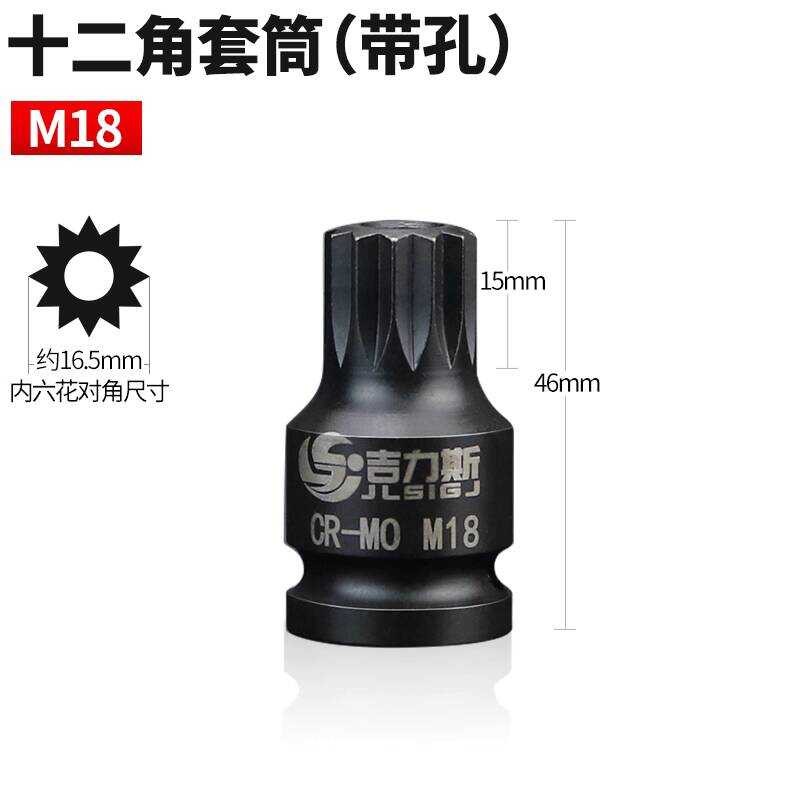 12-Point Star Bit M14 M16 M18 Spline Wrench Head 1/2 Electric Flower Pattern Medium Hole Hexagon