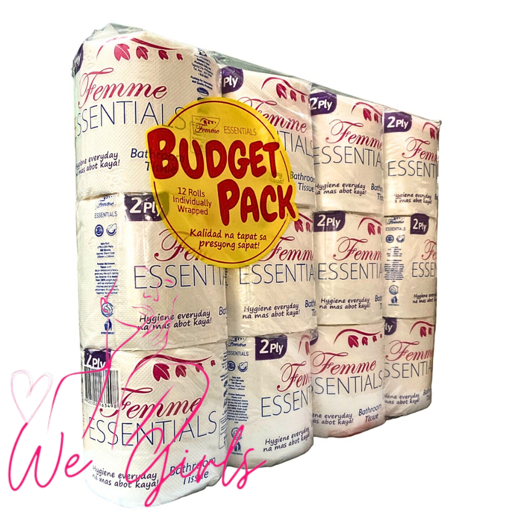 12 Rolls Femme Essential Bathroom Tissue Budget Pack 2 Ply