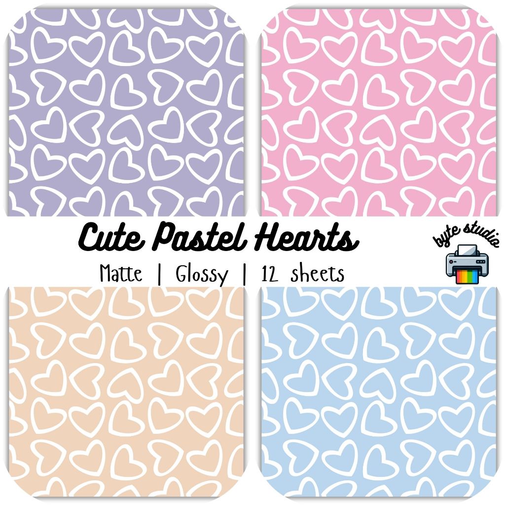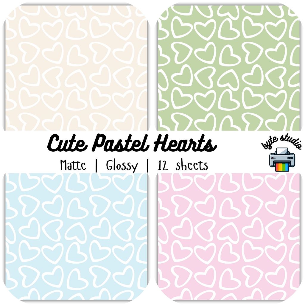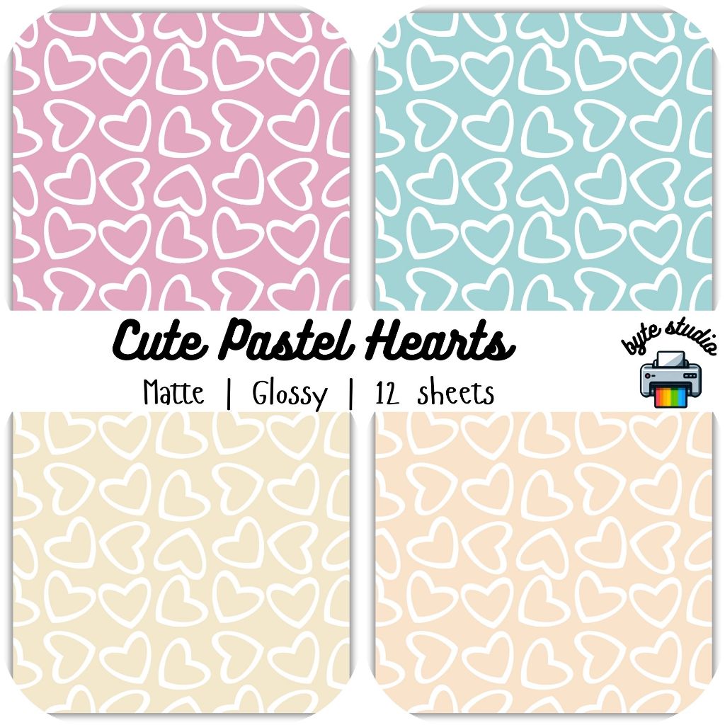 12 Sheets Cute Pastel Hearts #3 by byte studio | Cardstock Craft Paper Junk Journal Stationery