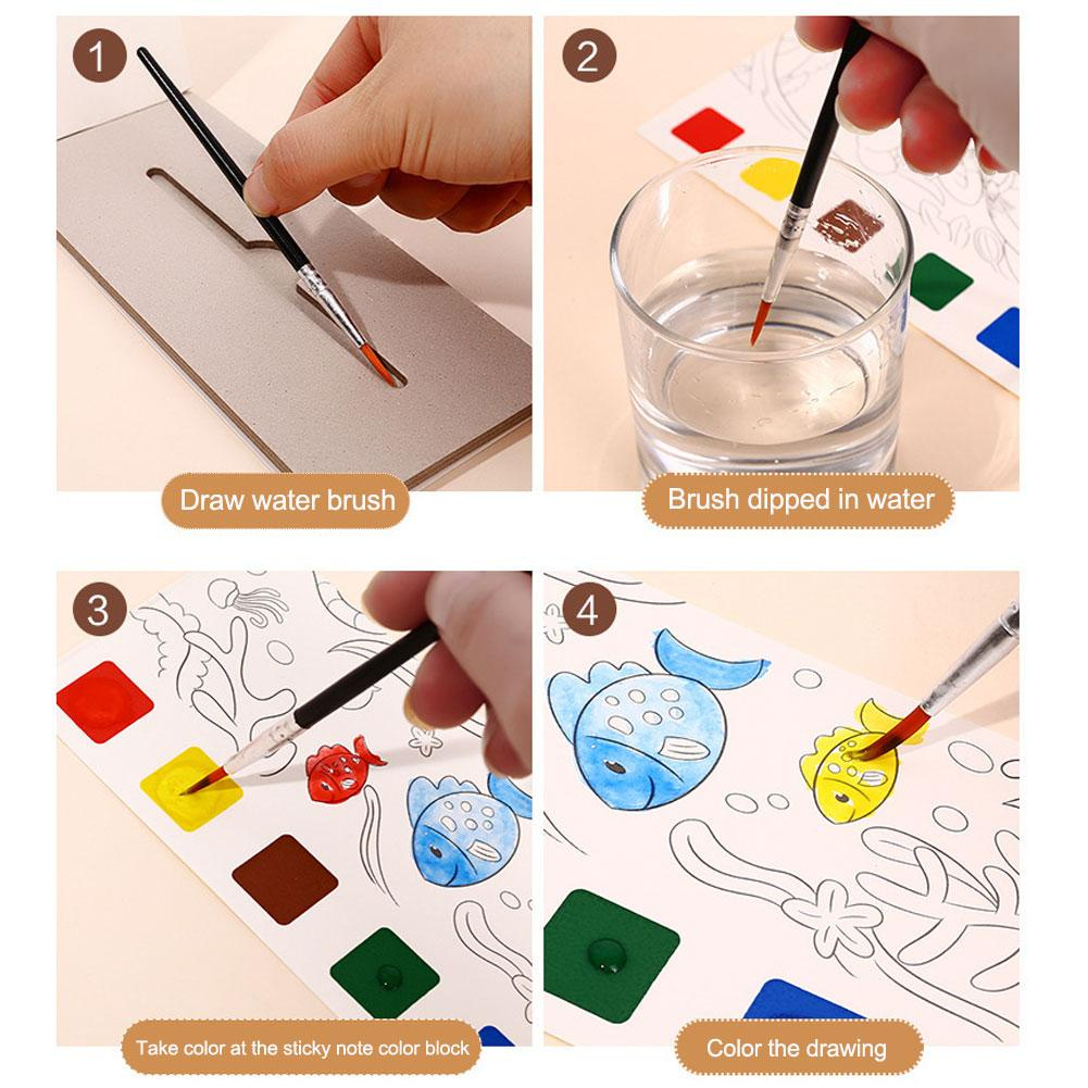 12 Sheets Painting Coloring Book Set with Paintbrush Graffiti WaterColor for Kids Art Leaning Supply