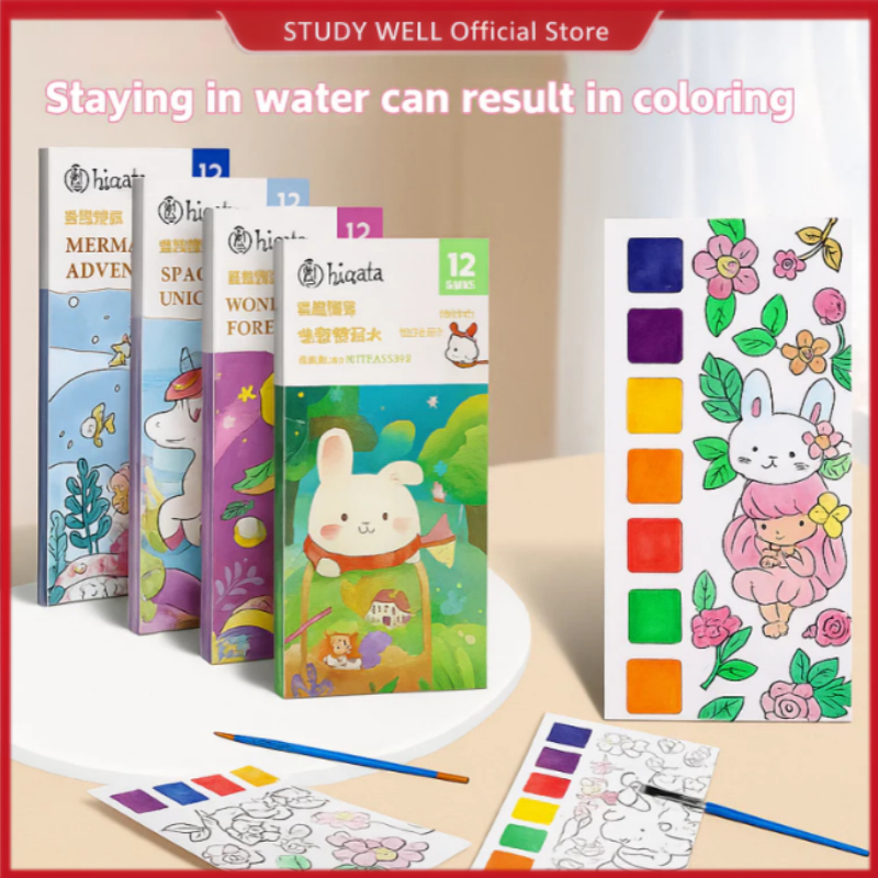 Coloring Book For Kids Watercolor Painting Set With Paintbrush Graffiti Art Learning Gift Supplies