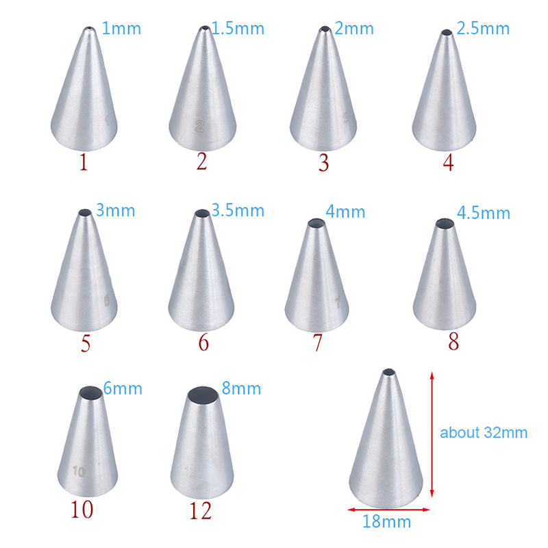 12 Sizes Round Hole Cake Icing Piping Tip Nozzle Lines Cupcake Decorating Cake Small Tips for Baking