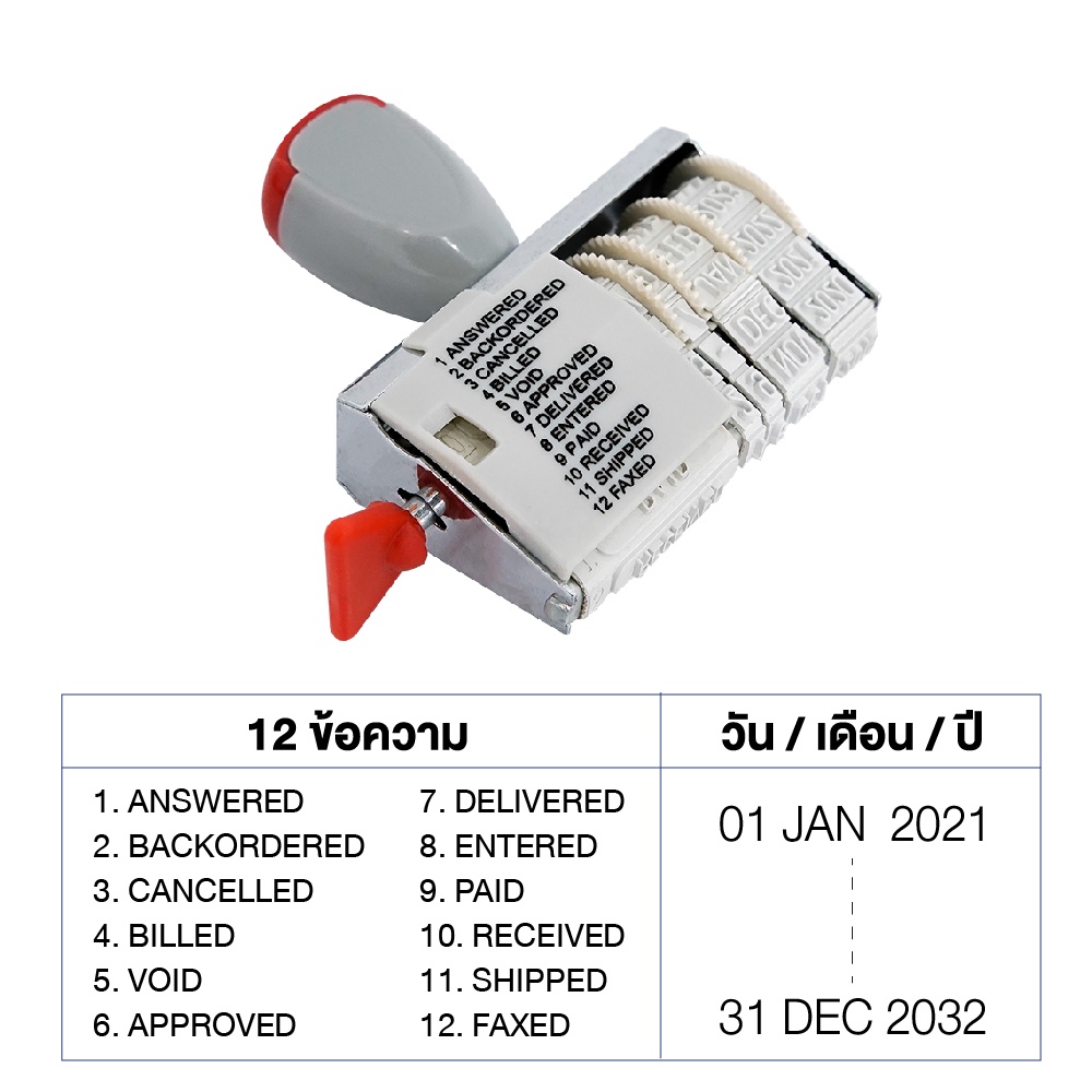 12 Text Stamps + English Date Size 4 Mm. Model YTD-2 PAID RECEIVED APPROVED CANCELLED