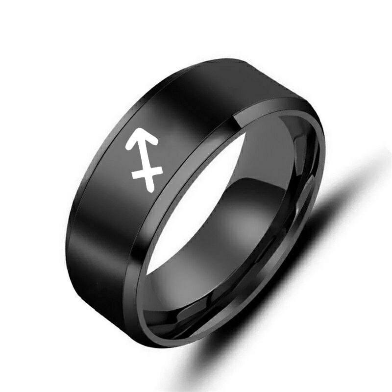 12 Zodiac Sign Constellation Ring Classic Black Stainless Steel ring for men women