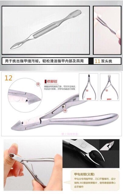 12 in 1 Pedicure Ear pick Stainless Steel Manicure Set Tools