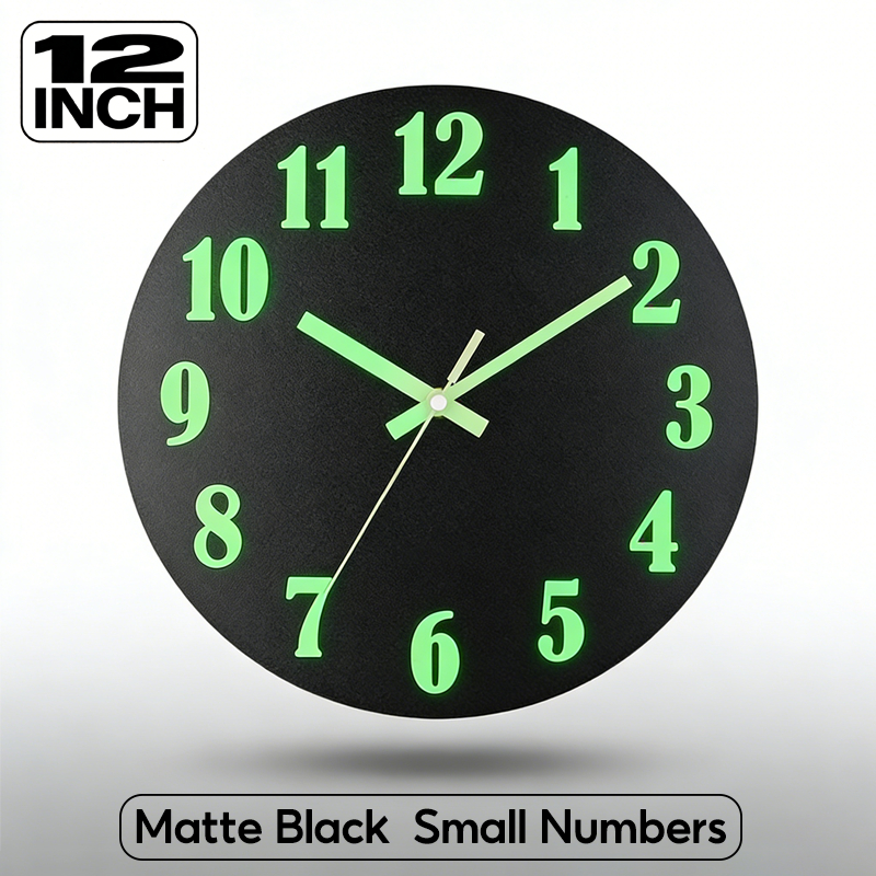 12-inch wooden wall clock glow in the dark fluorescence silent clock digital clock