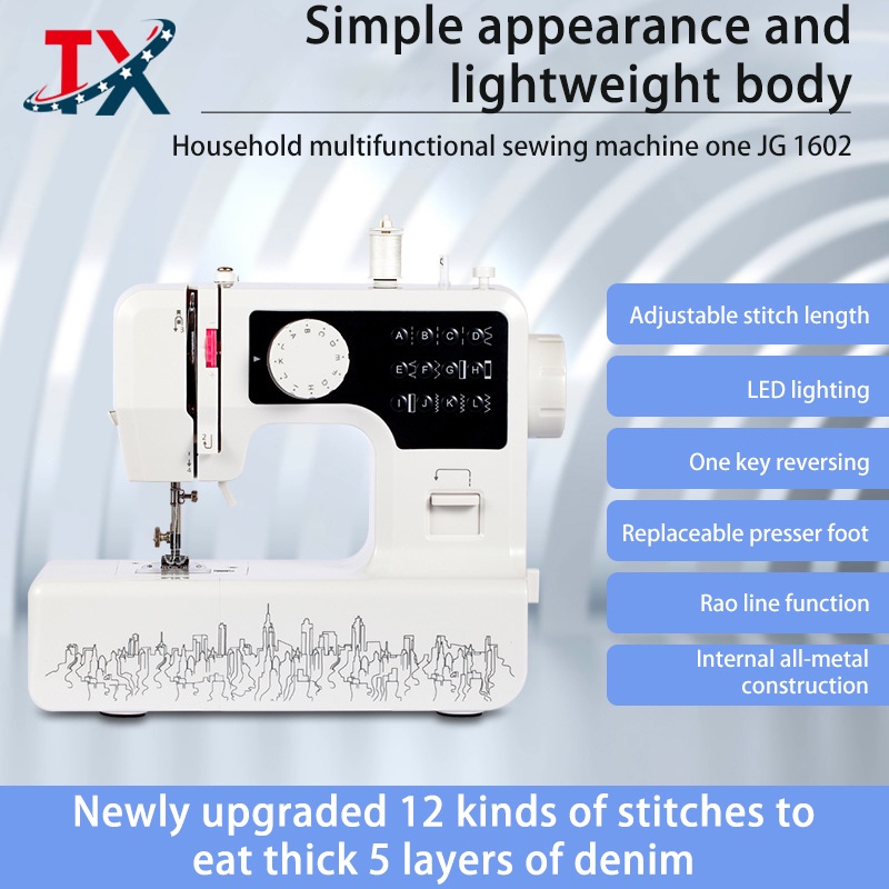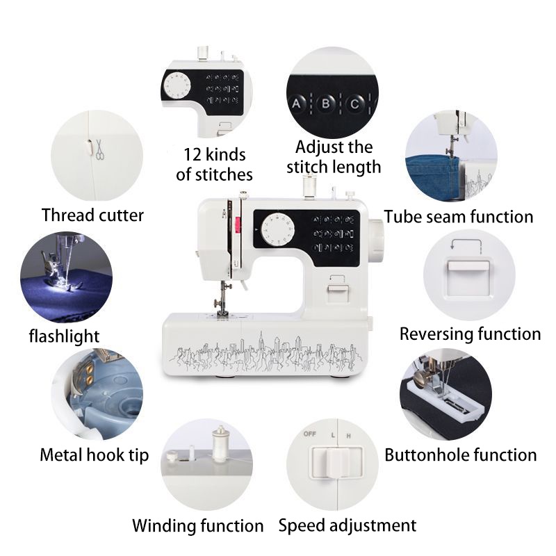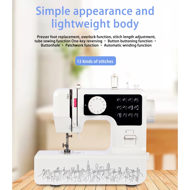 12 needle sewing machine mini multifunctional household sewing machine with foot pedal (white)