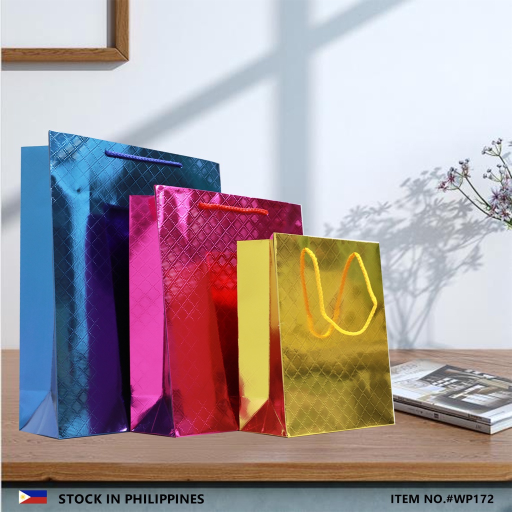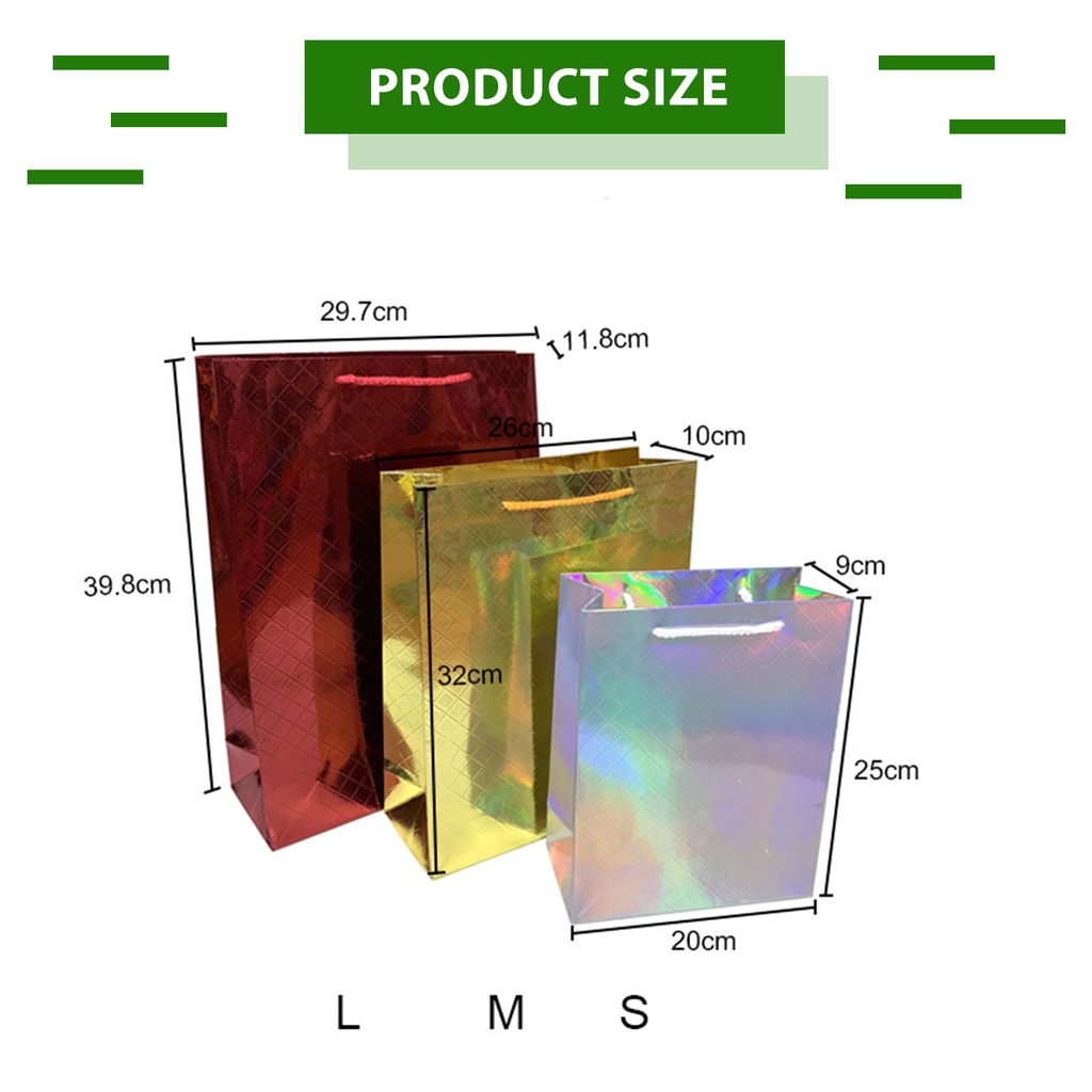 12 pcs 6 Color Laser Paper Bag Gift Bag Fashion Plain Rope Handle Bag storage bag Paperbag #WP172