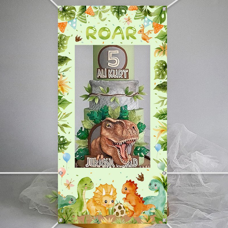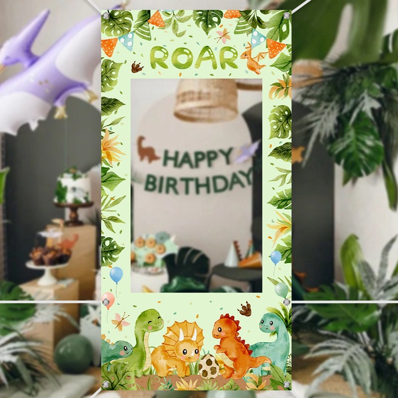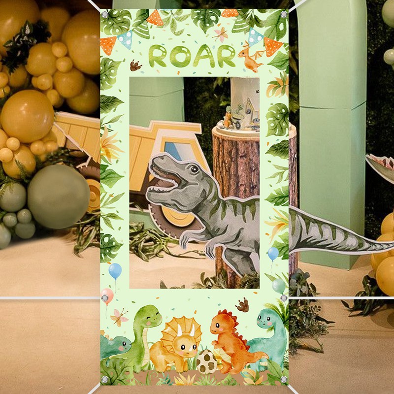 120*60cm Vinyl Dinosaur theme Birthday Photo Backdrop Cartoon Dinosaur Photo Booth Props Jungle Safari Party Decor Wild One Baby Shower Birthday Decoration Set For Boy Kids
