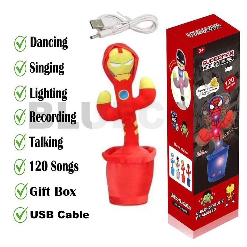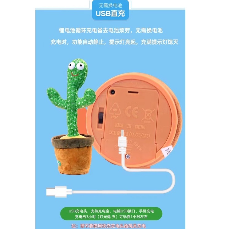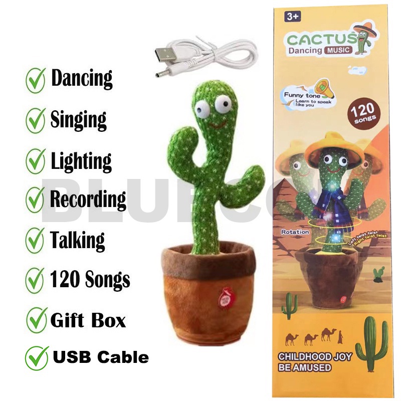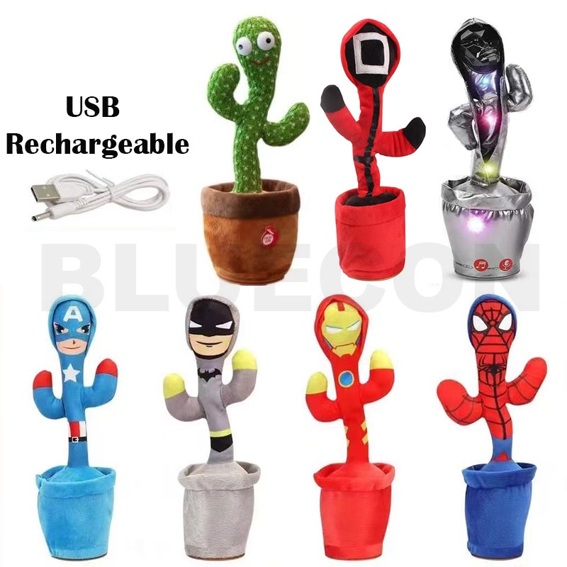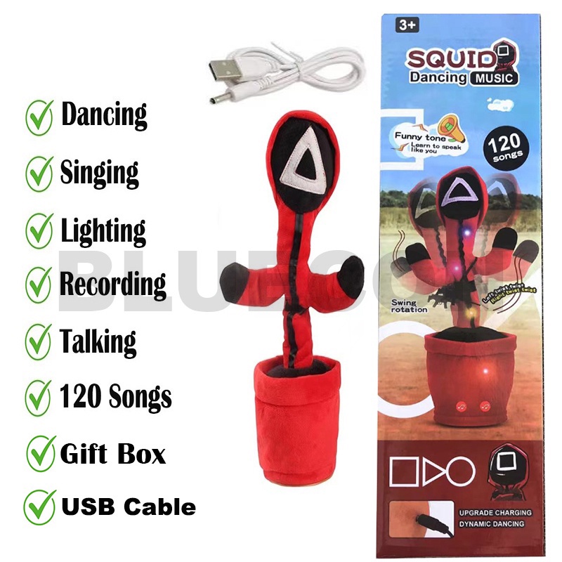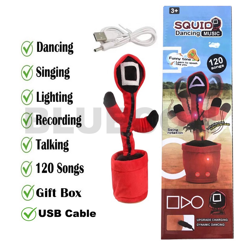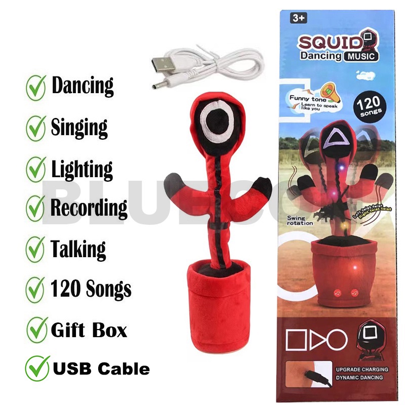 120 Songs Cactus / Squid Game Dance & Talking & Record TikTok USB Rechargeable Plush Toy Kaktus Bercakap Dancing Cactus