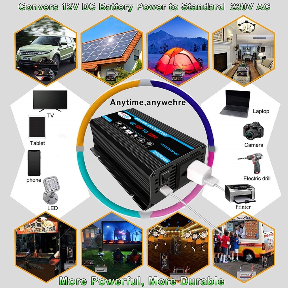 12000W Power Inverter DC Modified Sine Wave Solar Converter DC 12V To AC 220V With USB Fast Charge