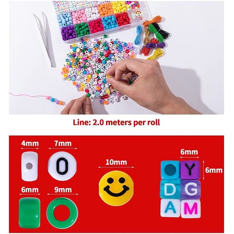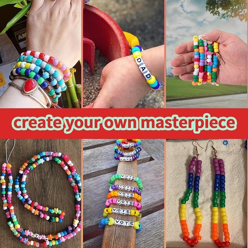 1200Pcs Diy Beads Set for Bracele Bracelets Kit 4mm 6mm Alphabet Letter Beads Box and Pony Bead for Bracelets Jewelry