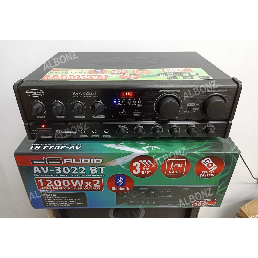 1200Watts x2 DB Audio Amplifier AV 3022 BT/USB/SD/FM Professional Digital Karaoke Amplifier