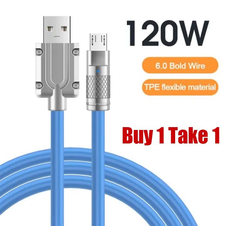 120W 6A Super Fast Android Charger Zinc Alloy Liquid Silicone Cable Fast Charging USB Cable Micro