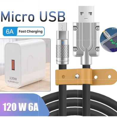 120W 6A Super Fast Android Charger Zinc Alloy Liquid Silicone Cable Fast Charging
