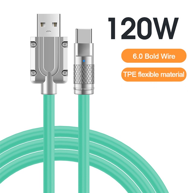 120W 6A Super Fast Charging Cable Type-C Liquid Silicone Cable Quick Charge Micro USB Cable USB C to C Bold 6.0 Data Cable