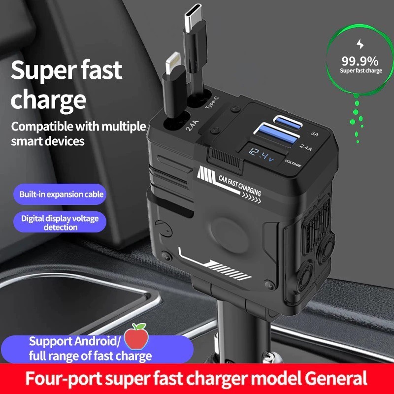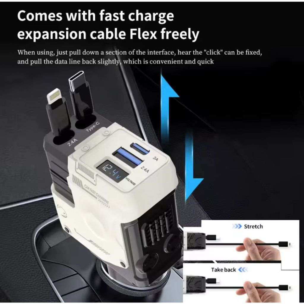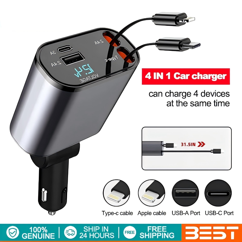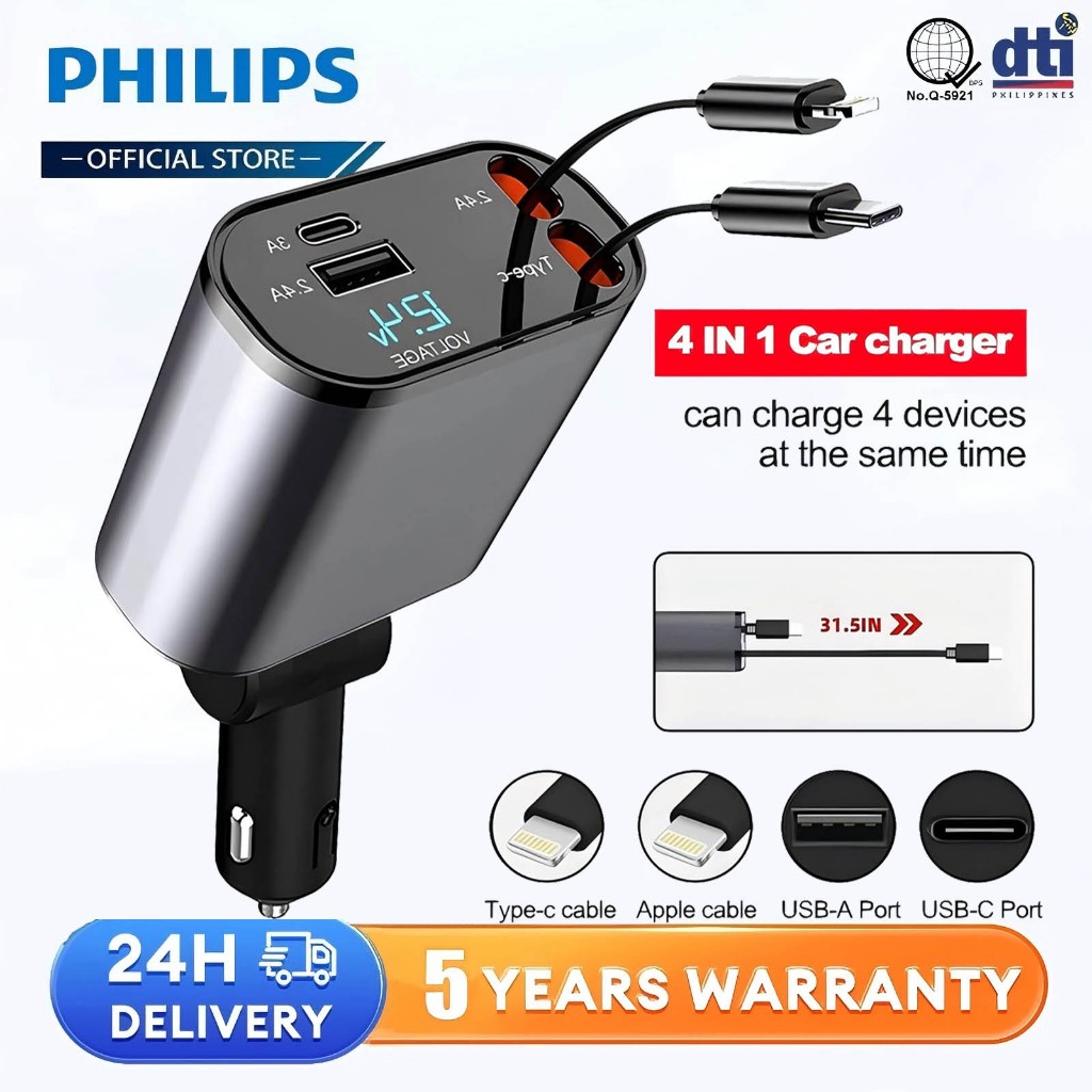 Philips 120W Retractable Car Charger 4 in 1 Fast Charger for Car Retractable car battery charger Cod