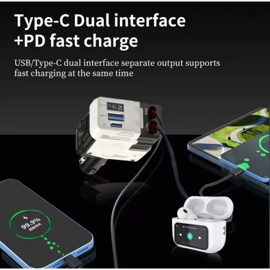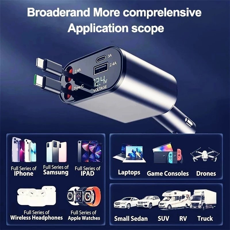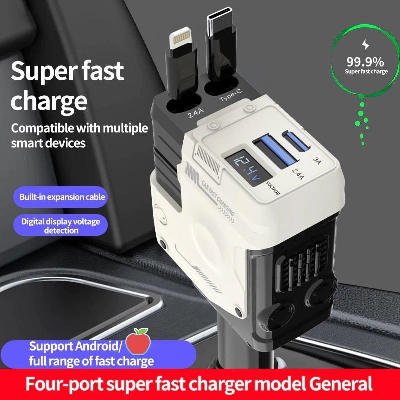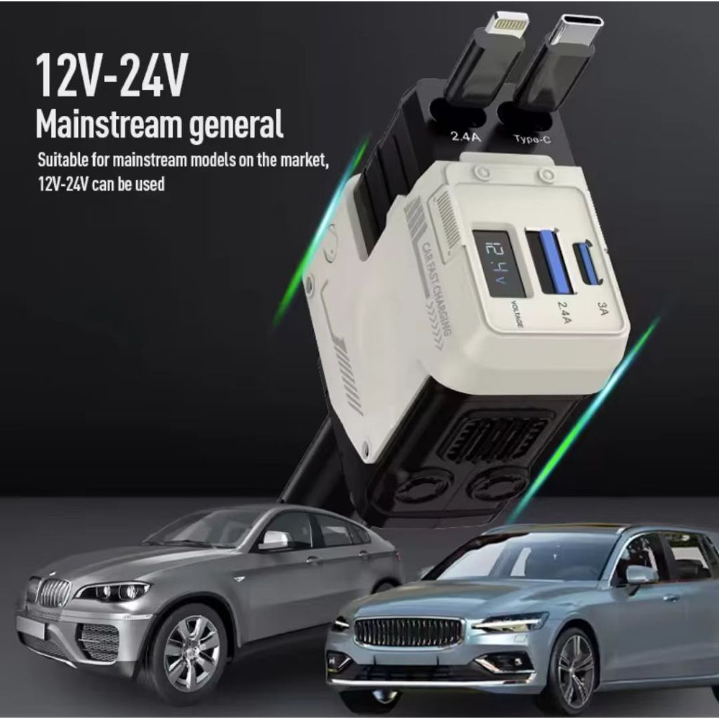 Philips 120W Retractable Car Charger 4 in 1 Fast Charger for Car Retractable car battery charger Cod