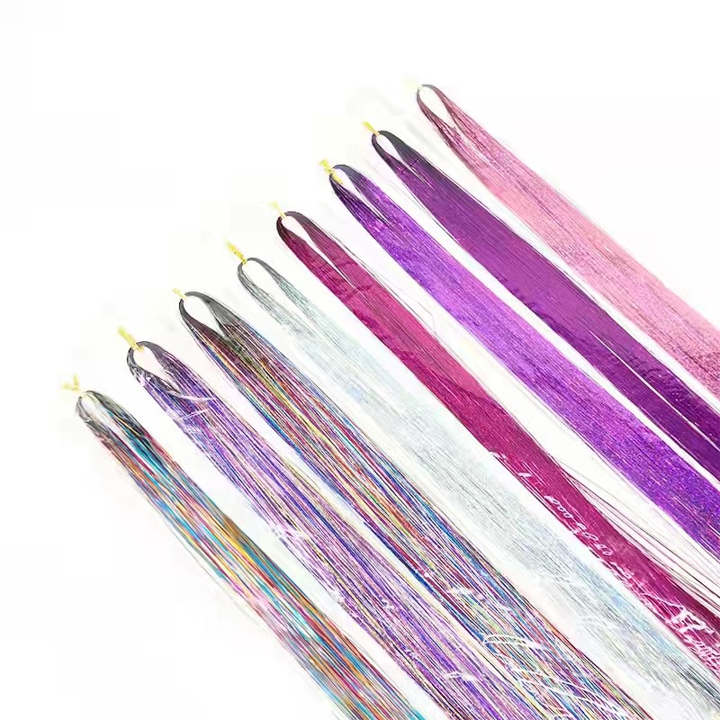 120cm Hair tinsel sparkle holographic glitter extensions highlight party hair accessories for women