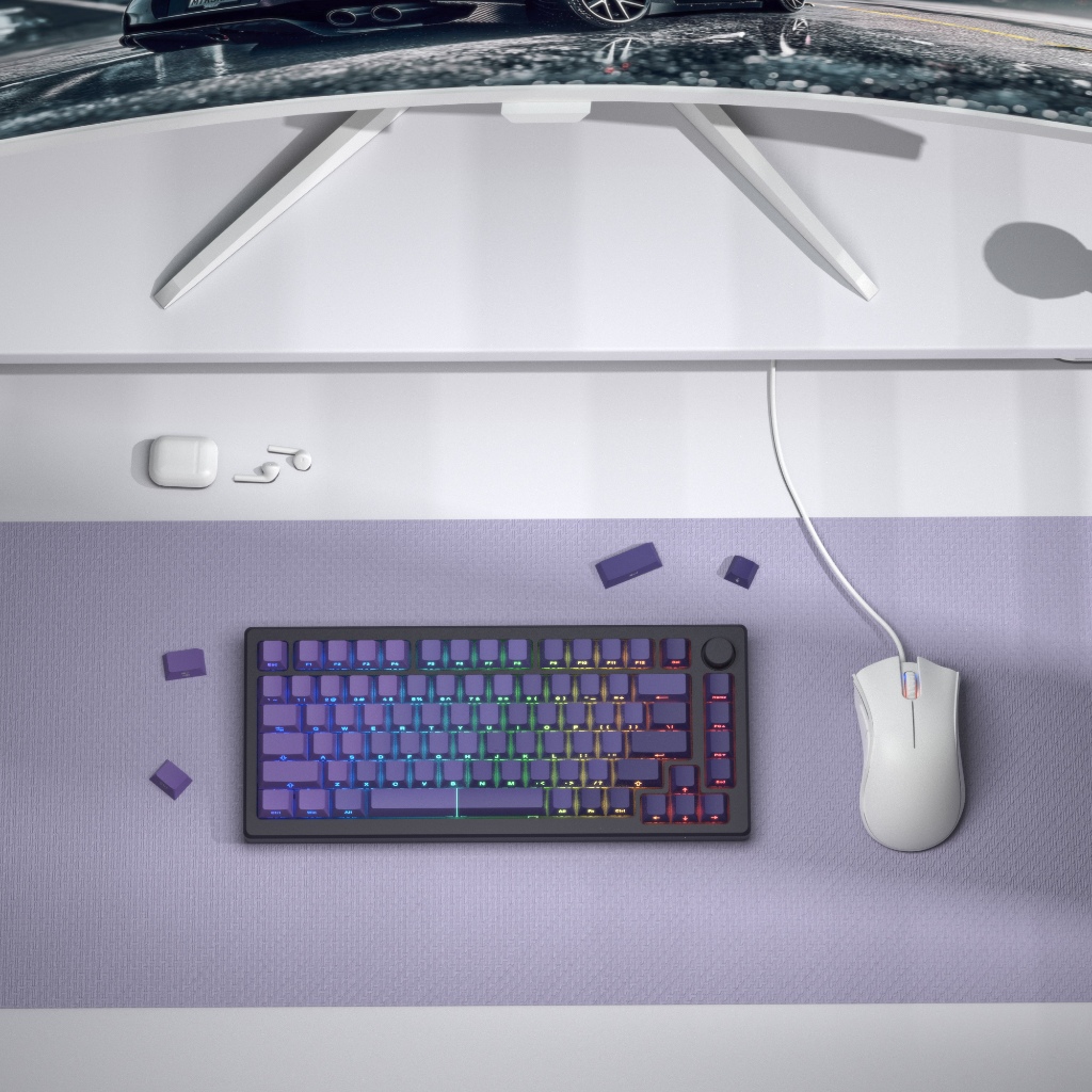 121 Keys Side Printed Keycaps Shine Through PBT Double Shot Backlit Gradient Purple Key Caps for MX Mechanical Keyboard