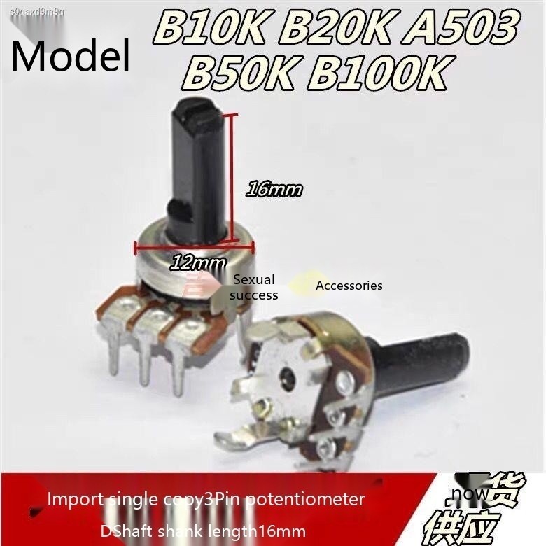121 type single 3-pin potentiometer volume regulator 16mmD axis B10K/A503/B50K/B100K