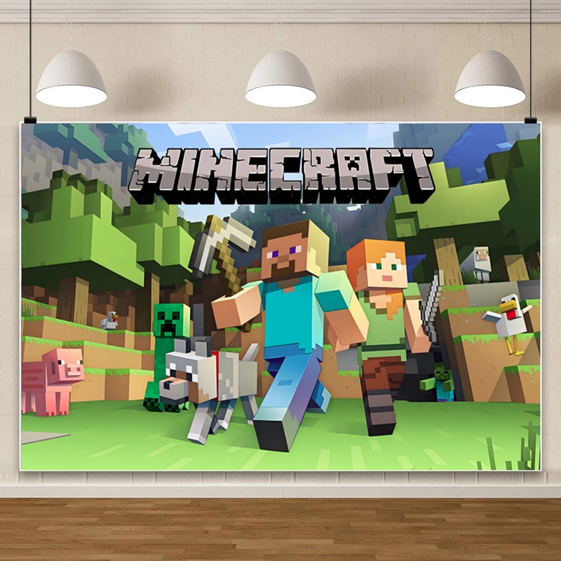 125*80cm Minecraft Play Time Theme Happy Birthday Party Backdrop Background Cloth Party Decoration