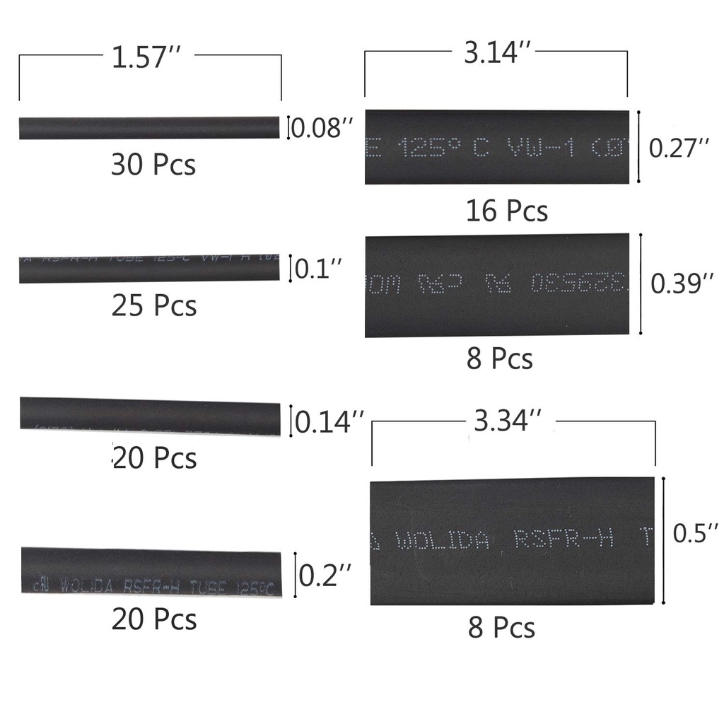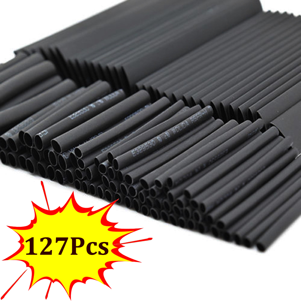 127Pcs 7 Sizes Set Heat Shrink Tubing Ratio 2:1 / Heat Shrink Electrical Wire Cable Wrap / Assortment Electric Insulation Heat Shrink Tube Kit / Long Lasting Insulation Protection / Black Weatherproof Heat Shrink Sleeving Tubing