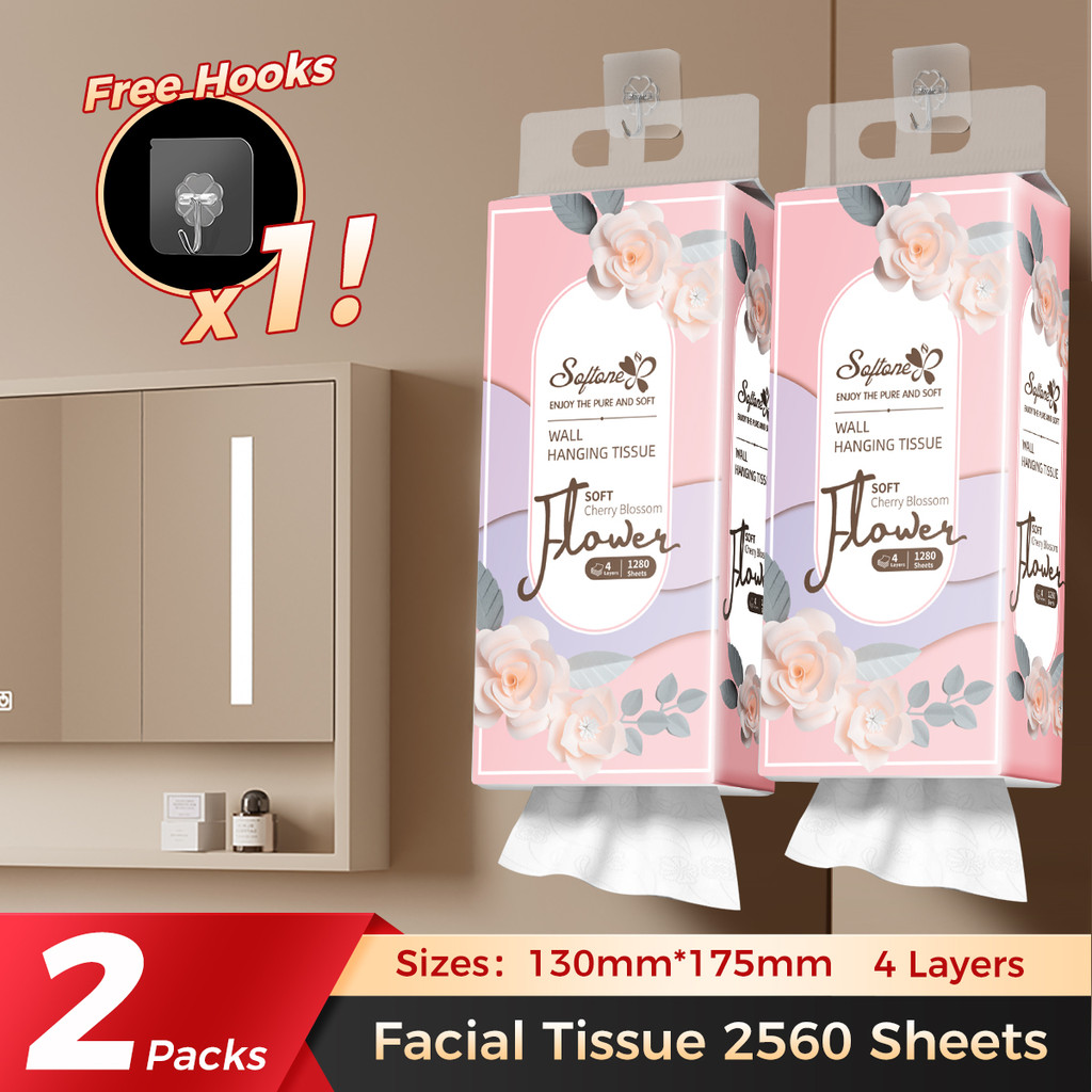 1280 Sheets 4Ply Jumbo Hand Tissue Facial Tissue Wall Hanging Toilet Paper Bathroom Tissue Paper BP