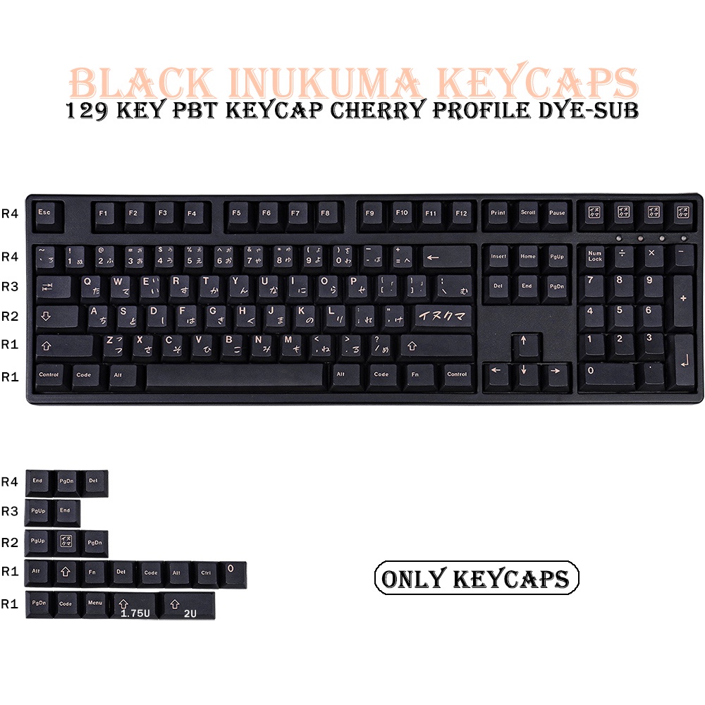 129 Keycaps PBT Cherry Profile DYE-SUB Japanese Inukuma Personalized For Cherry MX Mechanical Switch
