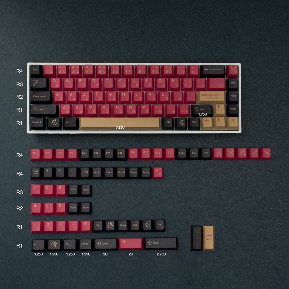 129 Keys PBT Keycap DYE-SUB Cherry Profile Red samurai KeyCaps For Cherry MX Switch Mechanical Keyboard