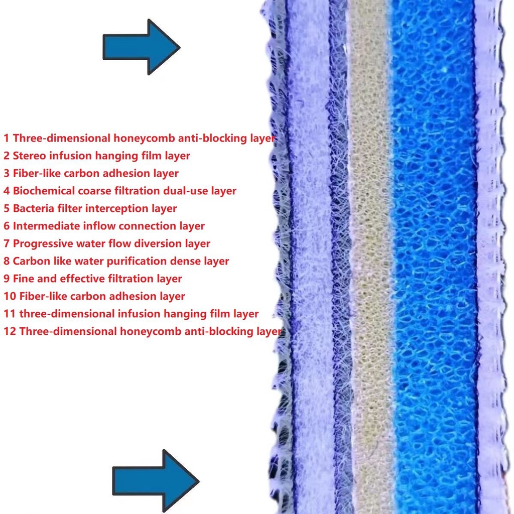 12D Bio Sponge Filter Aquarium Media 12-Layer No Glue High-density Fish Tank Pond External Filter Cotton