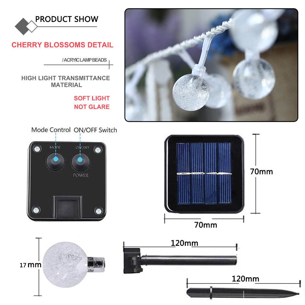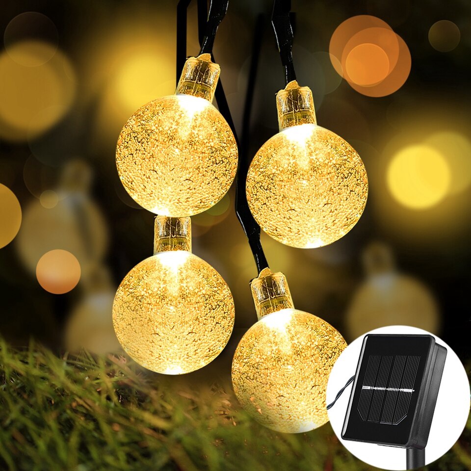 12M/100 LEDs Crystal Ball Solar LED String Lights Fairy Garlands Garden Christmas Decor Outdoor Patio Lawn Lamp