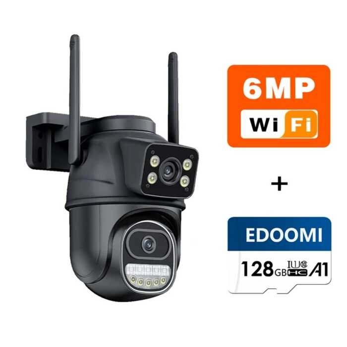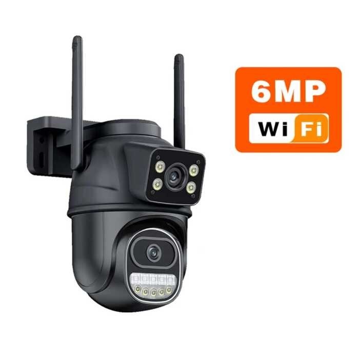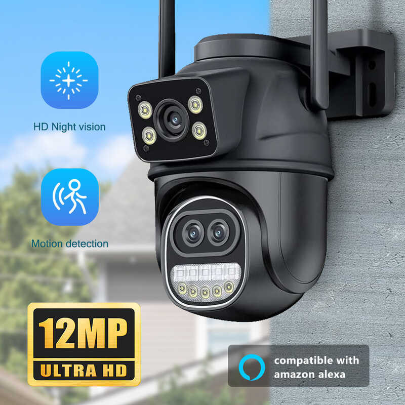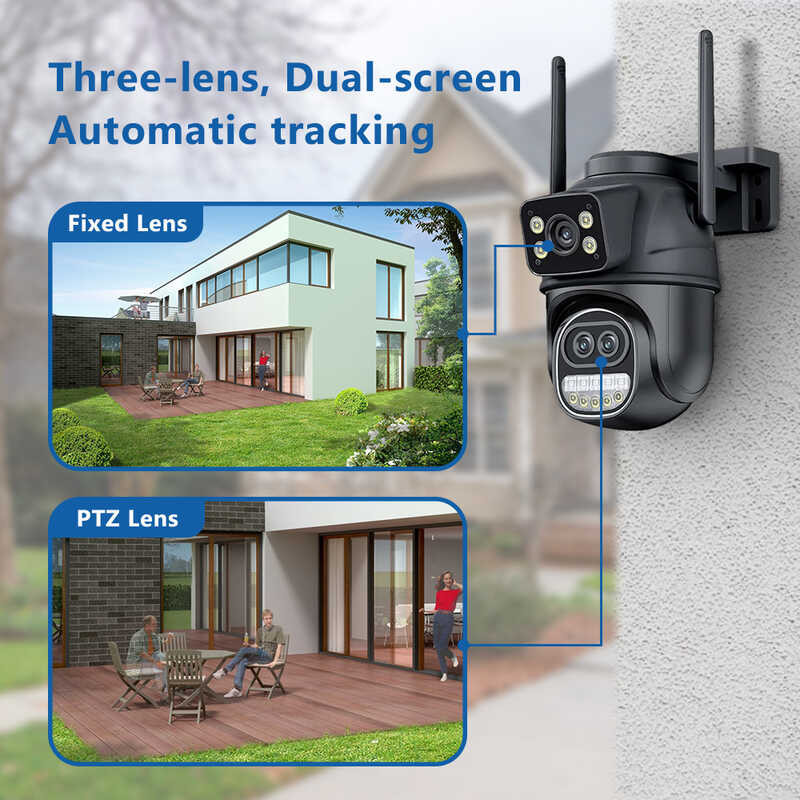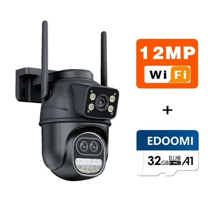 12Mp Wifi Camera Icsee Outdoor 6Mp Three Lens Dual Screens 8X Zoom CCTV Video Cam Auto Tracking Sec