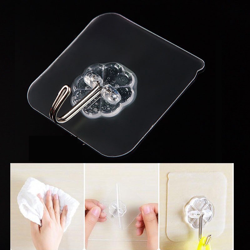 12PCS Adhesive Wall Hooks Reusable Anti-skid Traceless Heavy Duty Stick on Hooks Bathroom Kitchen