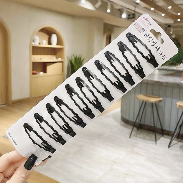 12PCS/SET Black Barrette Ladies Hair Clip Girls Side Clip Metal Hairpin Black Hair Clips Banger