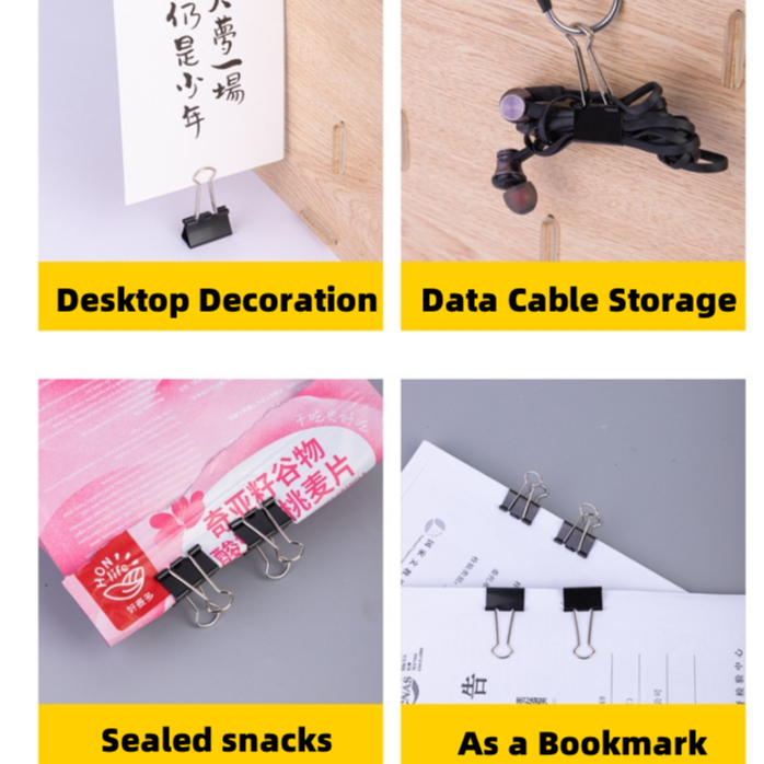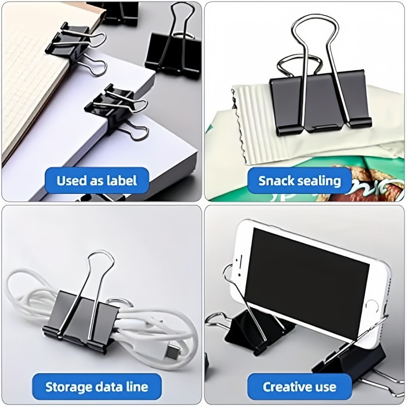 12PCS/box Black binder Clips Long Tail Grip Multi-Purpose Ticket/Paper Dovetail Clip Office Supplies