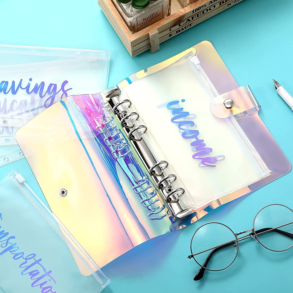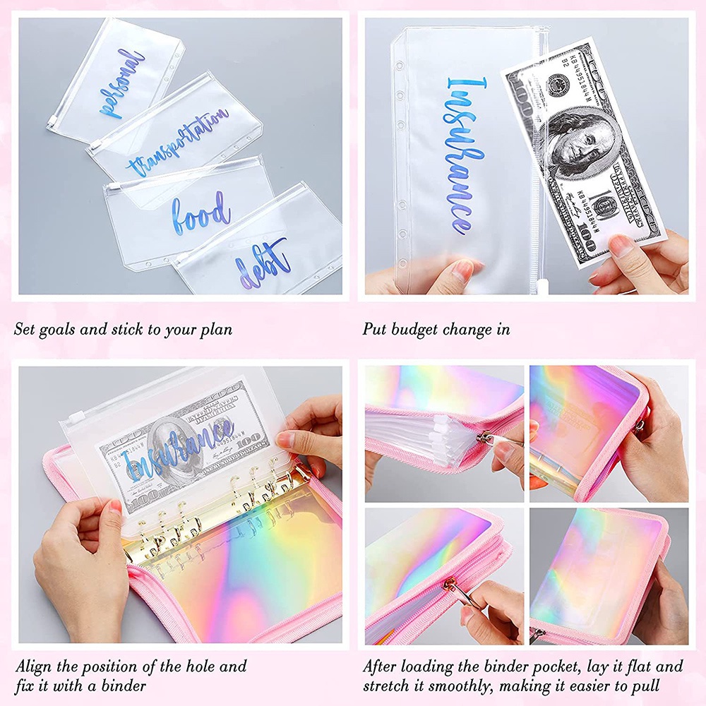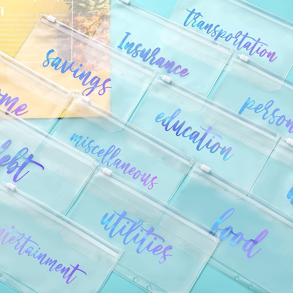 12Pcs A6 Cash Planner Binder Pocket File Organizer Storage Folder Transparent PVC Loose Leaf Pouch with Zipper Filing Binder