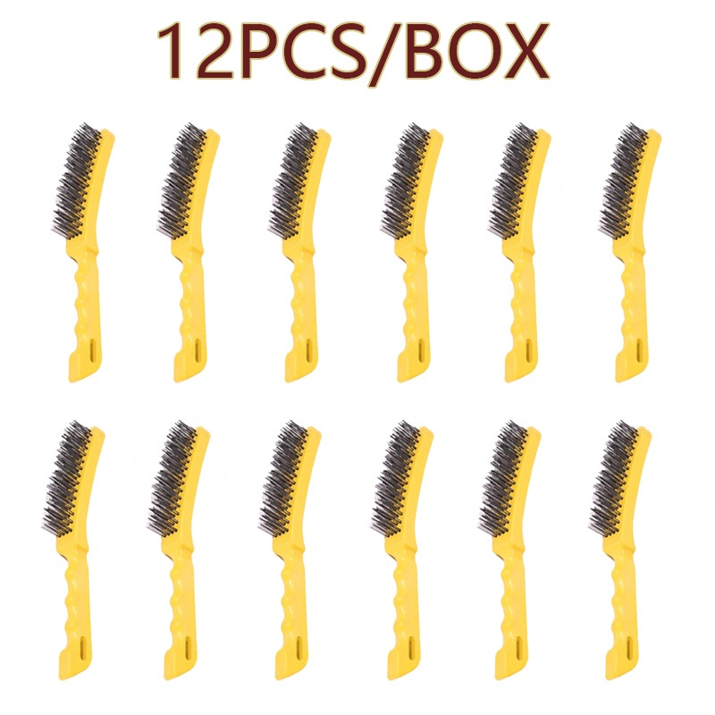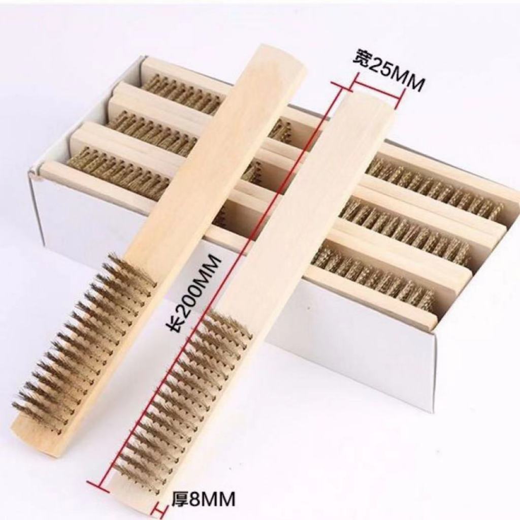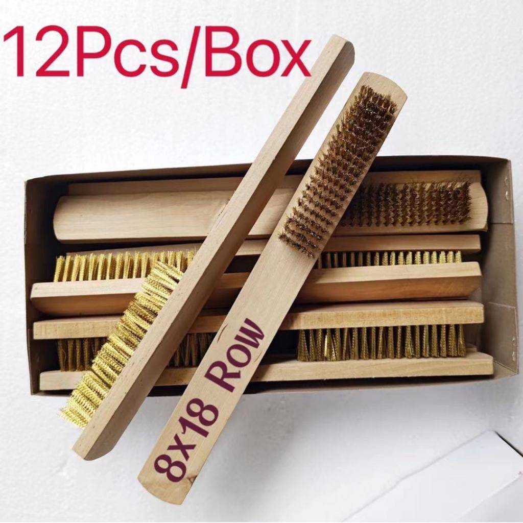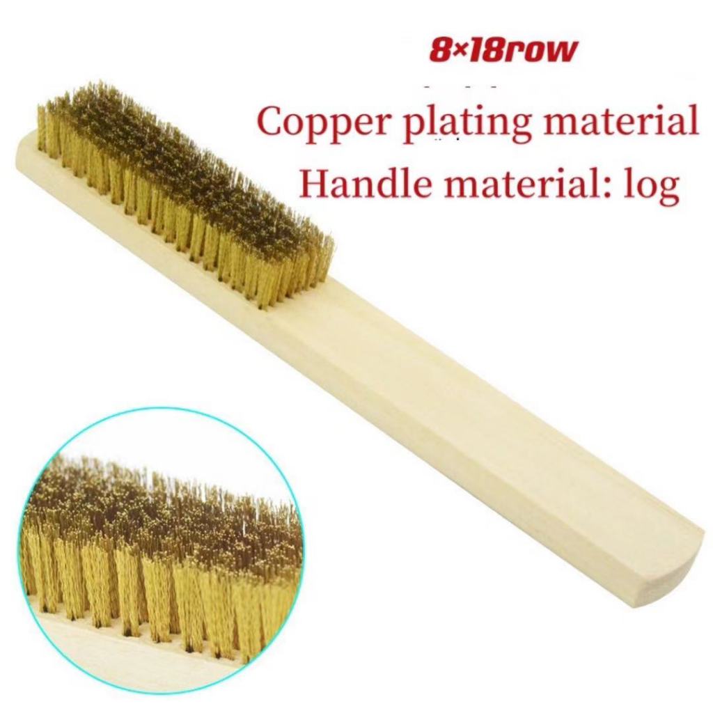 12Pcs/Box Wire Brushes Copper Plated Steel Brushes with Wood Handle 18 x 8 Lines Wire Scratch Brush