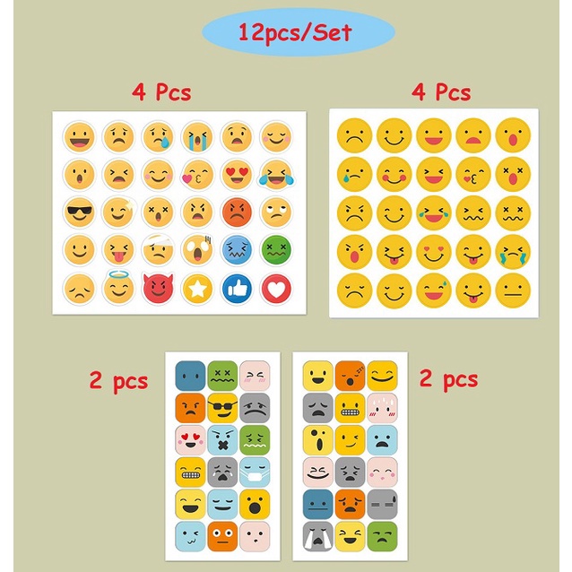12Pcs Emoji Stickers Cute Smile Emoticons Stationery Stickers Mini Emoticons Journal Photo Album Decor Labels Sticker