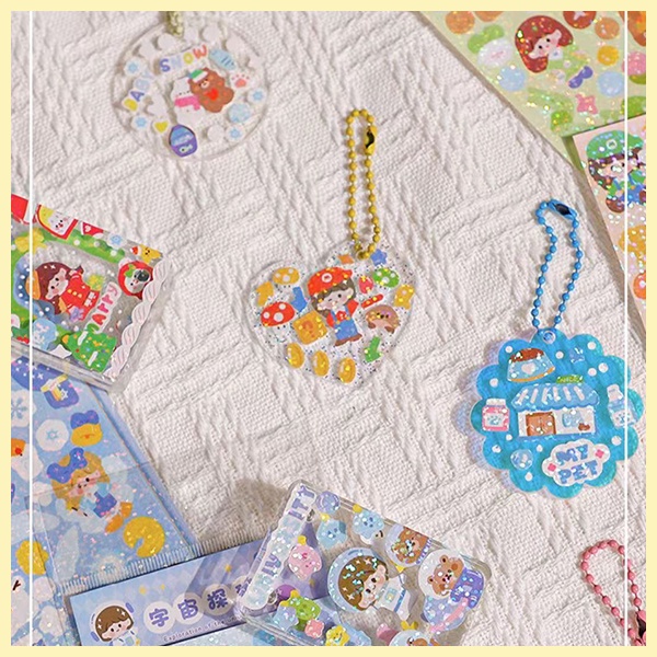 12Pcs Guka Stickers Cartoon Cute Guka Disk Transparent Gradient DIY Decorative Stickers