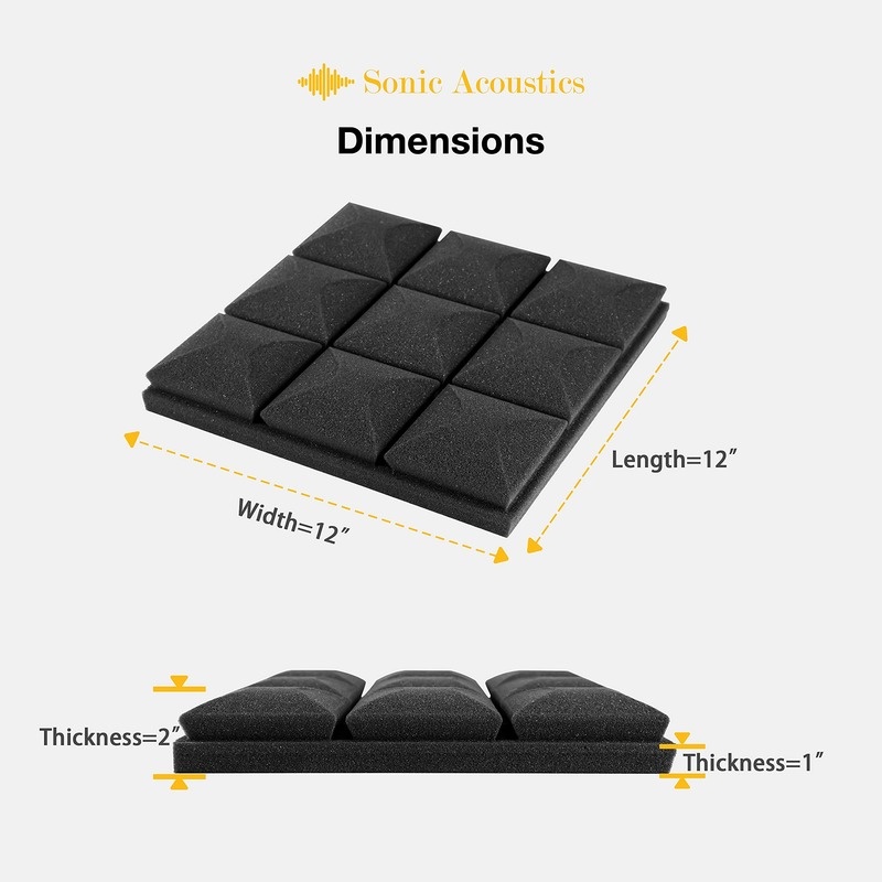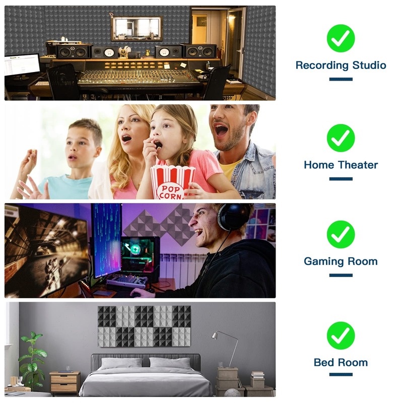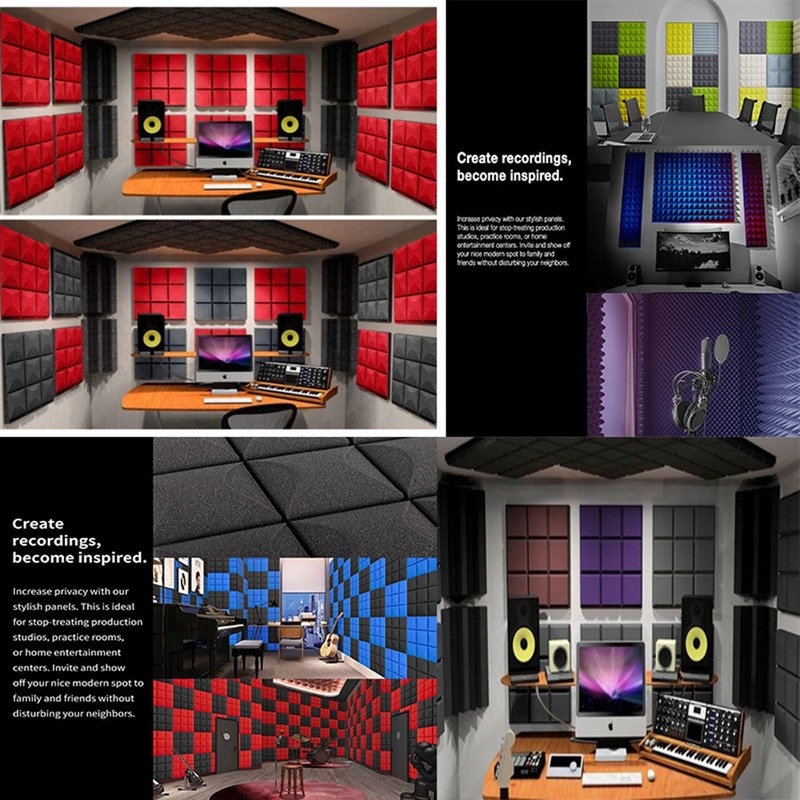 12Pcs Large Size Studio Acoustic Foam Panels Bedroom Sound Proof Foam Panels KTV Soundproofing Sponge Pad Absorption Treatment Home Wall Panels