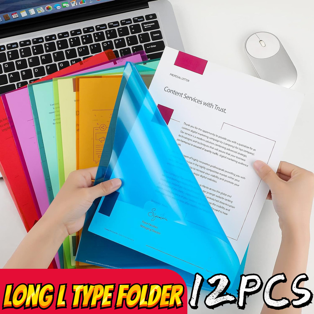 12PCS Long File Folder Clear Folder for Document Organizer Project Pockets Plastic Sleeves 35*23CM