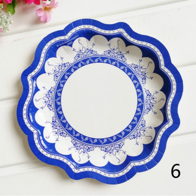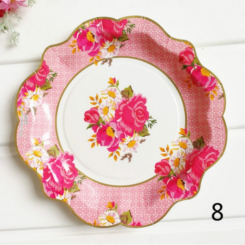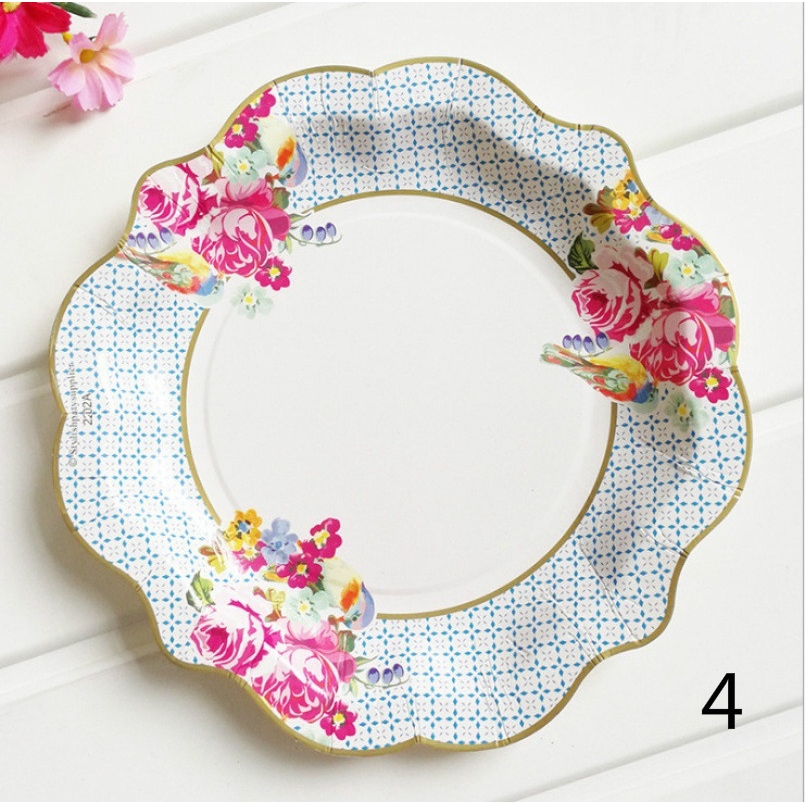 12Pcs/Pack Disposable Paper Plates Multi-Coloured Floral Vintage Traditional Afternoon Tea Party