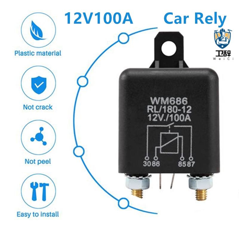 12V 100Amp 4-Pin Heavy Duty ON/OFF Switch Split Charge Relay Black