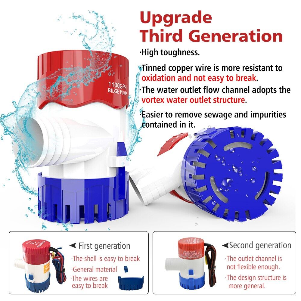 12V 1100GPH bilge pump semi-automatic switch electric small submersible pump bilge pump