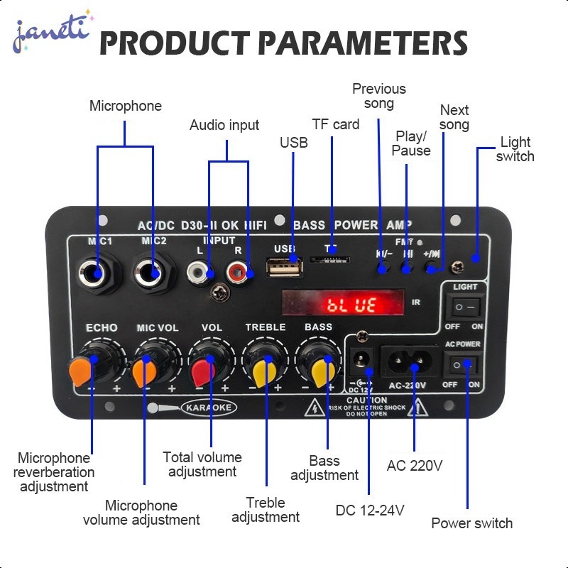 【COD】D30-II Amplifier 8-12 inch Mini Amplifier Board Bluetooth Outdoor Digital Display Car Amplifier